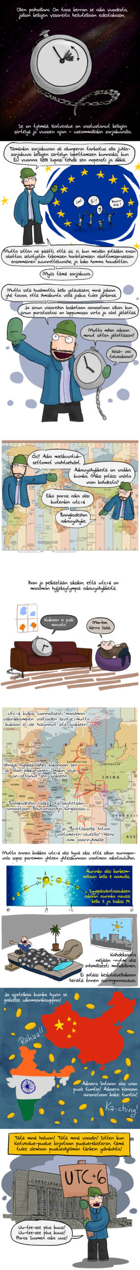 Vaikka sarjakuva toki vitsi onkin, niin olen silti myös ihan aidosti sitä mieltä, että minulle utc+6 sopisi paljon nykyistä aikavyöhykettä paremmin.