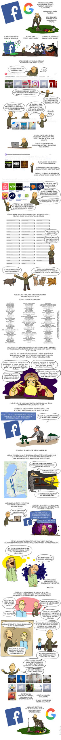 Sarjakuvan sisältämä ote Googlen hakuhistoriaani on valitettavan tylsä. Siinä ei ole yhtä ainoaa sellaista hakua, joka herättäisi suoraa epäuskoa ja mahdollista somekohua, päin vastoin se on aika laimea ja selkeä. Pari hakua liittyy siihen, että olen hakenut jollekin termille käännostä, ja yhdessä vaiheessa olin kiinnostunut, kuinka yleisesti käytetty termi 'purukumiratkaisu' on suomen kielessä, mutta mitään todella häröä en ole viime aikoina etsinyt. Tämä tietysti johtuu siitä, etten ole viime aikoina piirtänyt sarjakuvia, koska yleensä kaikki kummallisimmat hakuni liittyvät ns. 'taustatutkimukseen' tai piirrosmallien hakuun. Tai siihen, että olen kiinnostunut miten ihmiset käyttävät kieltä. Ne haut, jotka sisälsivät työnantajani nimen on poistettu siitä syystä, että työnantajani tulkinnan mukaan, jos mainitsen työskenteleväni heille, silloin edustan sosiaalisessa mediassa myös heitä. Ja minulla ei ole mitään halua edustaa heitä yhtään missään -- työajan ulkopuolella. Päin vastoin, jättämällä heidän nimensä mainitsematta säilytän itselläni paremmin mahdollisuuden kritisoida heitä, koska ainakaan omien toimieni seurauksena yritys ei ole julkisesti tunnistettavissa. Ei niin että välttämättä heitä koskaan sen erityisemmin täällä tulisin kritisoimaan, mutta haluan säilyttää tämän terapeuttisen mahdollisuuden itselläni.