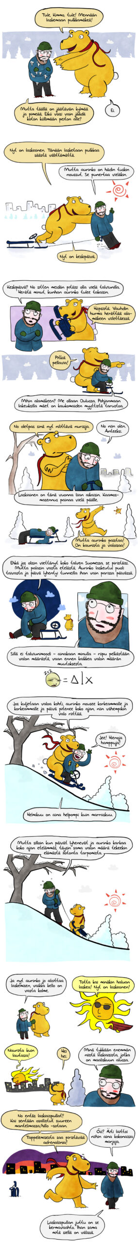 Palasin takaisin Suomeen lelujeni ääreen, joten on aika piirtää taas sarjakuva. Parin kuukauden piirtämättömyys tuntui sormissa, ja cmd+z sai laulaa tavallistakin enemmän, mutta ihan kelpoja piirroksia minä silti sain aikaan.