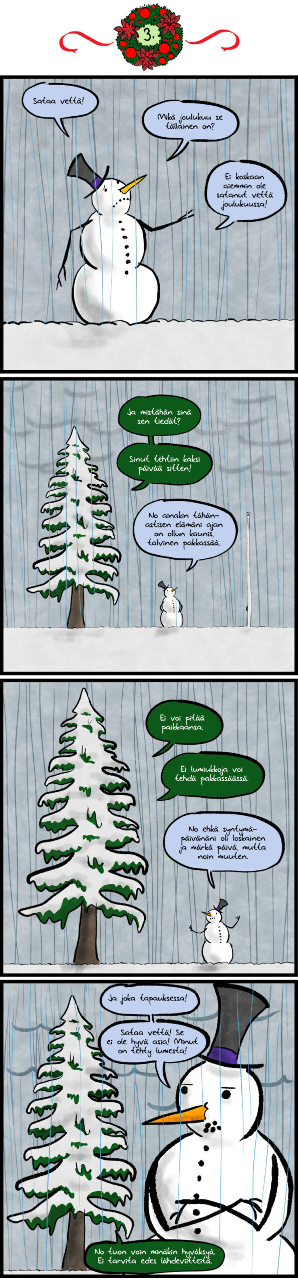 Tätä vähän pelkäsin. Ukko-parka sulaa ennen joulua.
