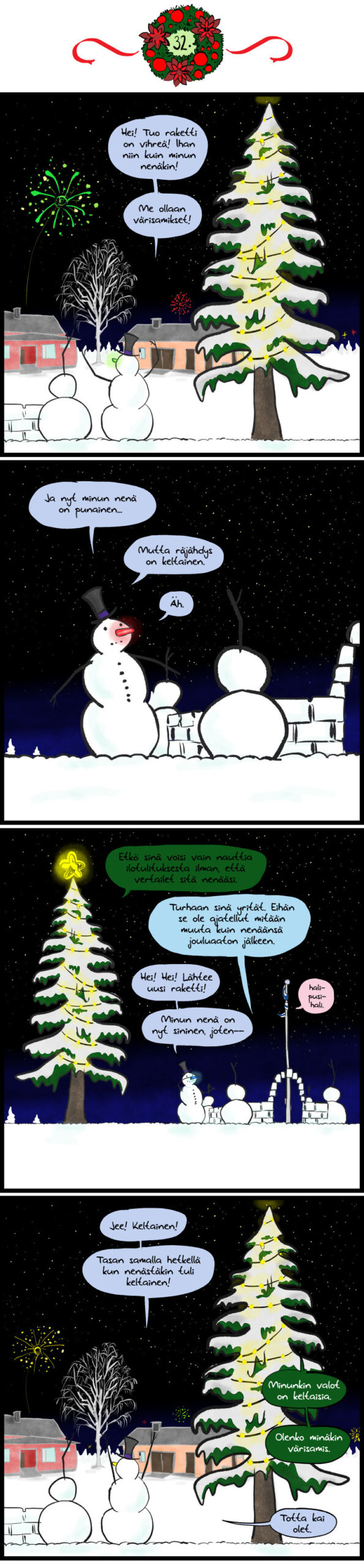 Ja joulukalenterimme hahmot palaavat vielä toivottamaan hauskaa uuttavuottakin! Eikö niistä päästä koskaan eroon?